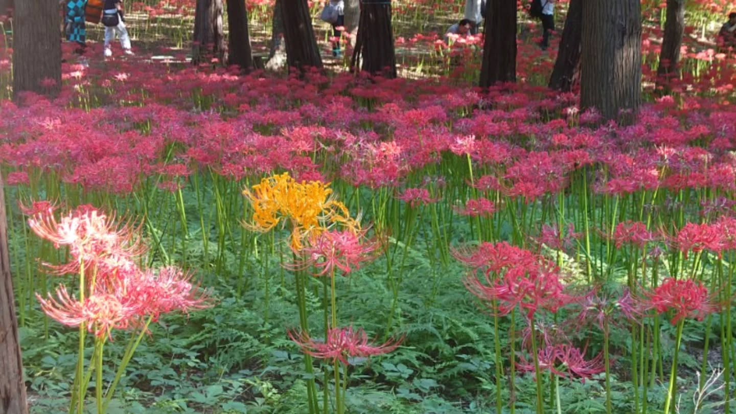 赤い彼岸花が埋め尽くす中、ひときわ目立つ黄色の彼岸花が…
