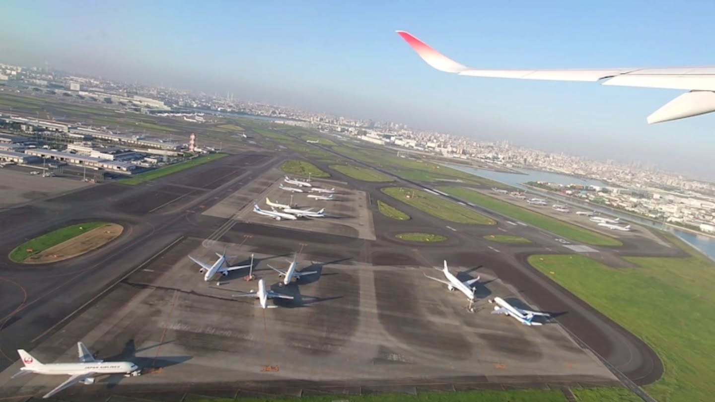 離陸直後の福岡行きの飛行機から、羽田空港を眺めます