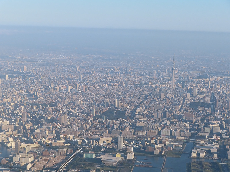 羽田空港を離陸した福岡行きの飛行機は、海沿いをいったん千葉方面へ