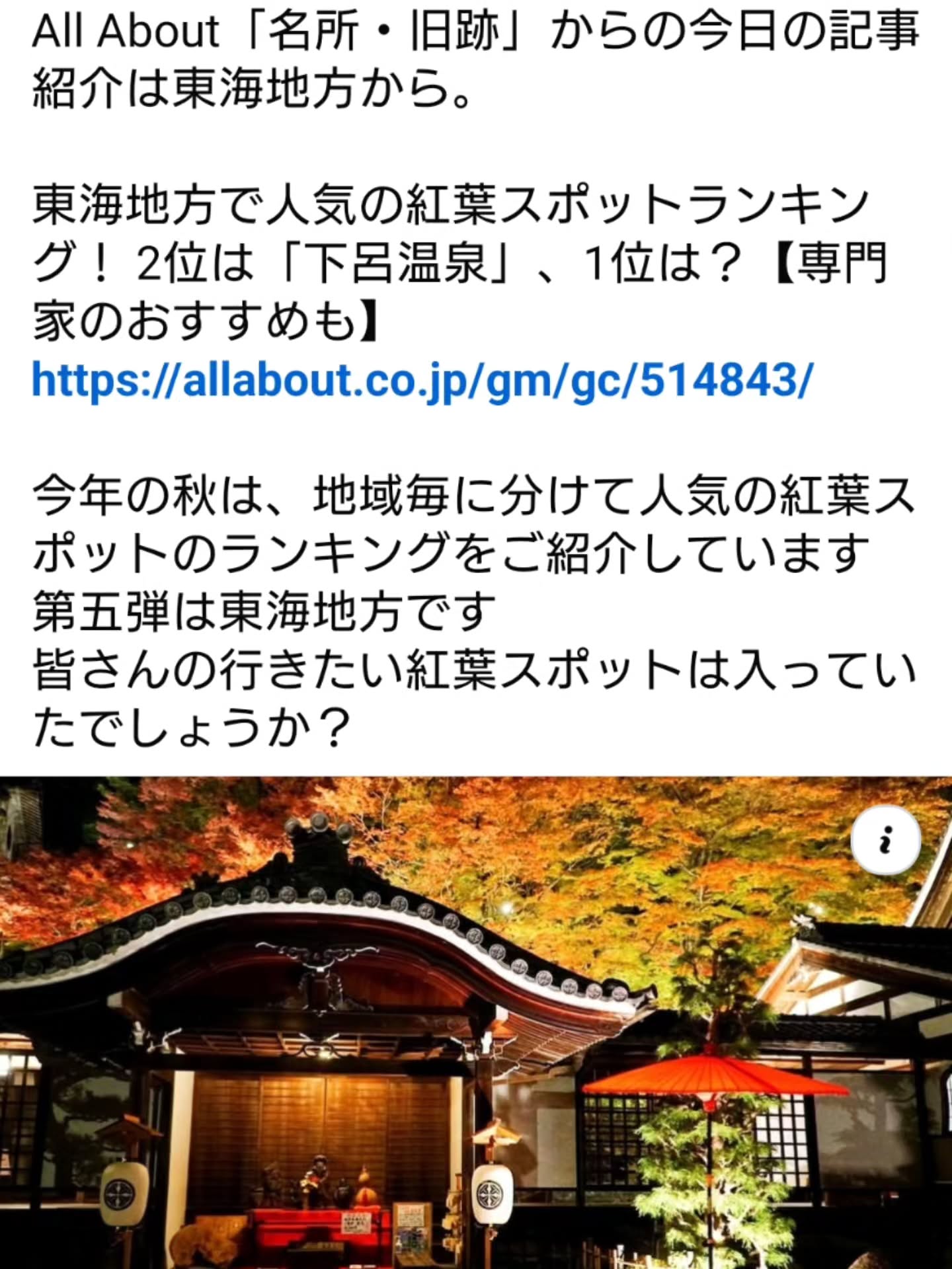 今年の秋は、All About編集部が集めたアンケート結果から、各地域で行きたい紅葉スポットの人気ランキングを紹介する記事に協力しています