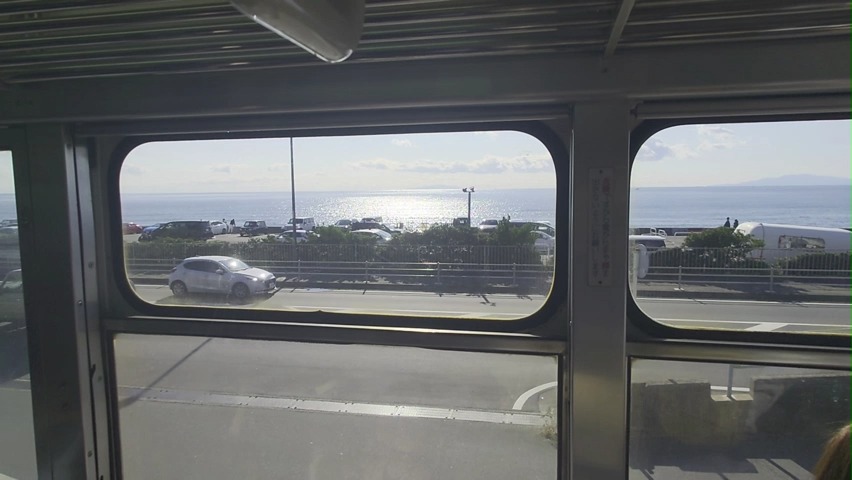 稲村ヶ崎駅を出て少し走ると海沿いの区間に入りました