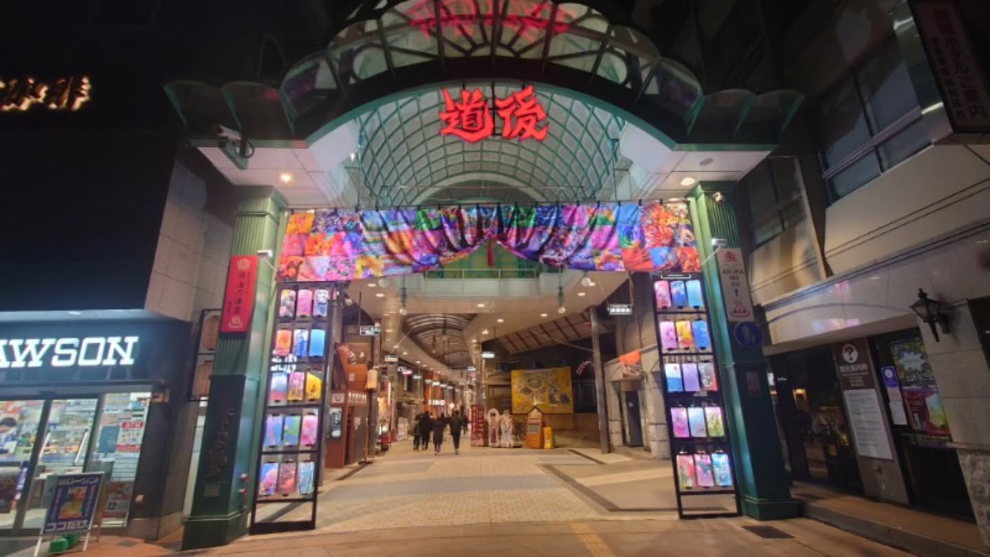 ◇四国アートに飾られた道後ハイカラ通りの入口