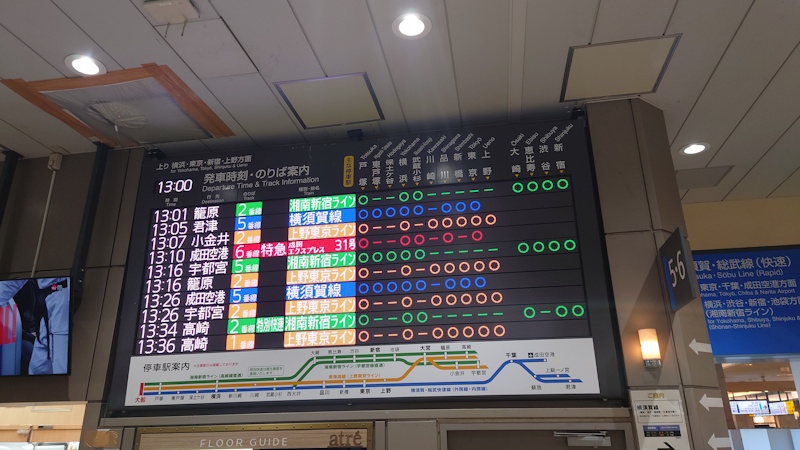 カラフルな大船駅の出発案内