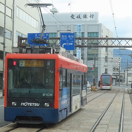 5系統 道後温泉行きを追う形ですぐ後ろにいた2系統 環状線内回り