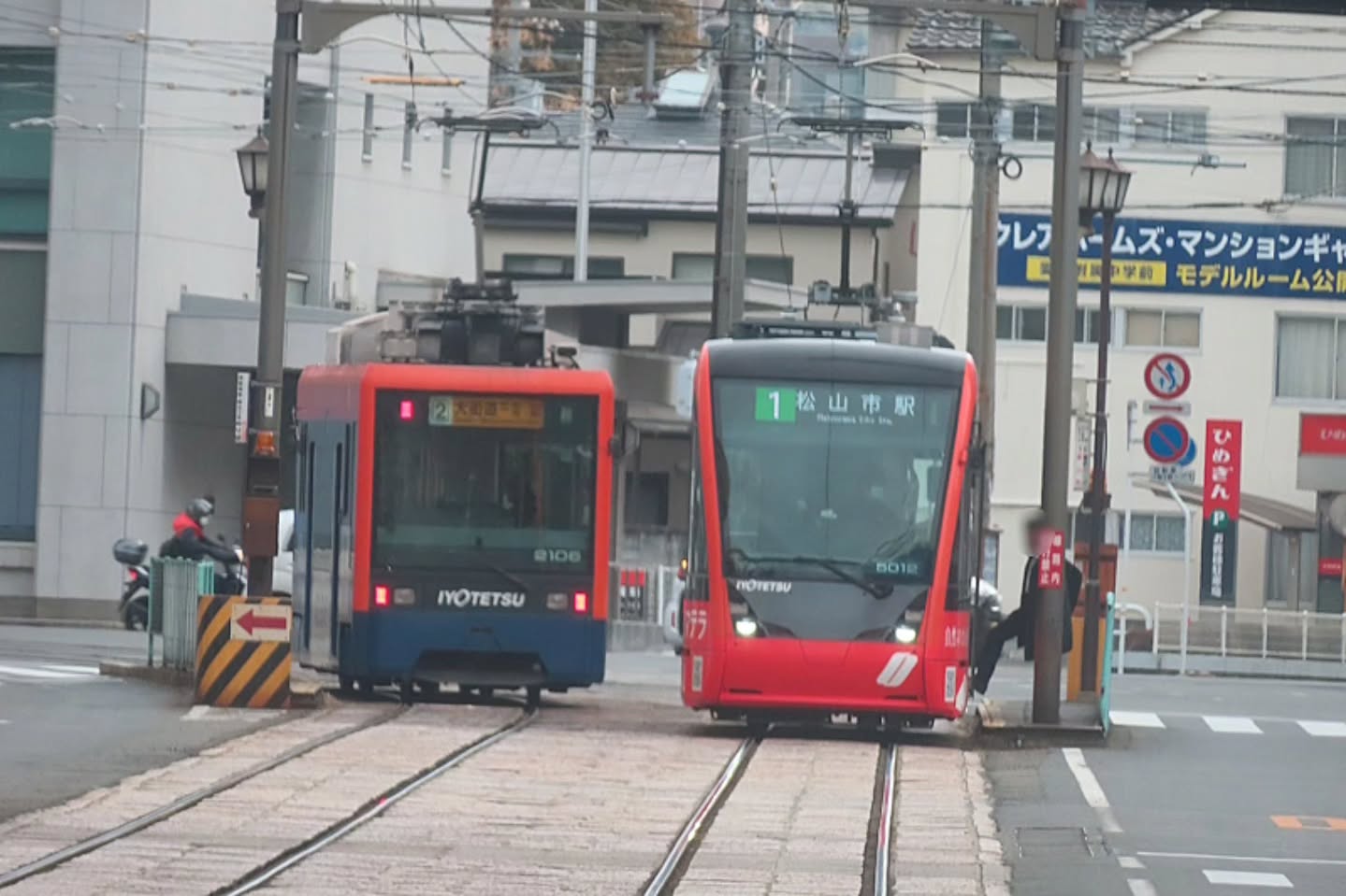 伊予鉄道 2100形と5000形の並び