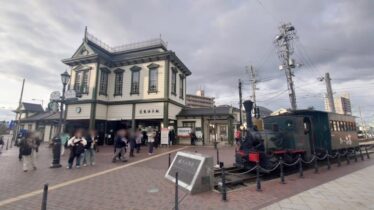 道後温泉駅と坊っちゃん列車坊っちゃん列車とレトロな雰囲気の道後温泉駅をセットで路面電車の停留所は「電停」と言いますが、ここの表記は「道後温泉駅」ですちなみにレトロな駅舎の中はスタバだったりします(笑)@道後温泉電停/2026.1.31#鉄分...